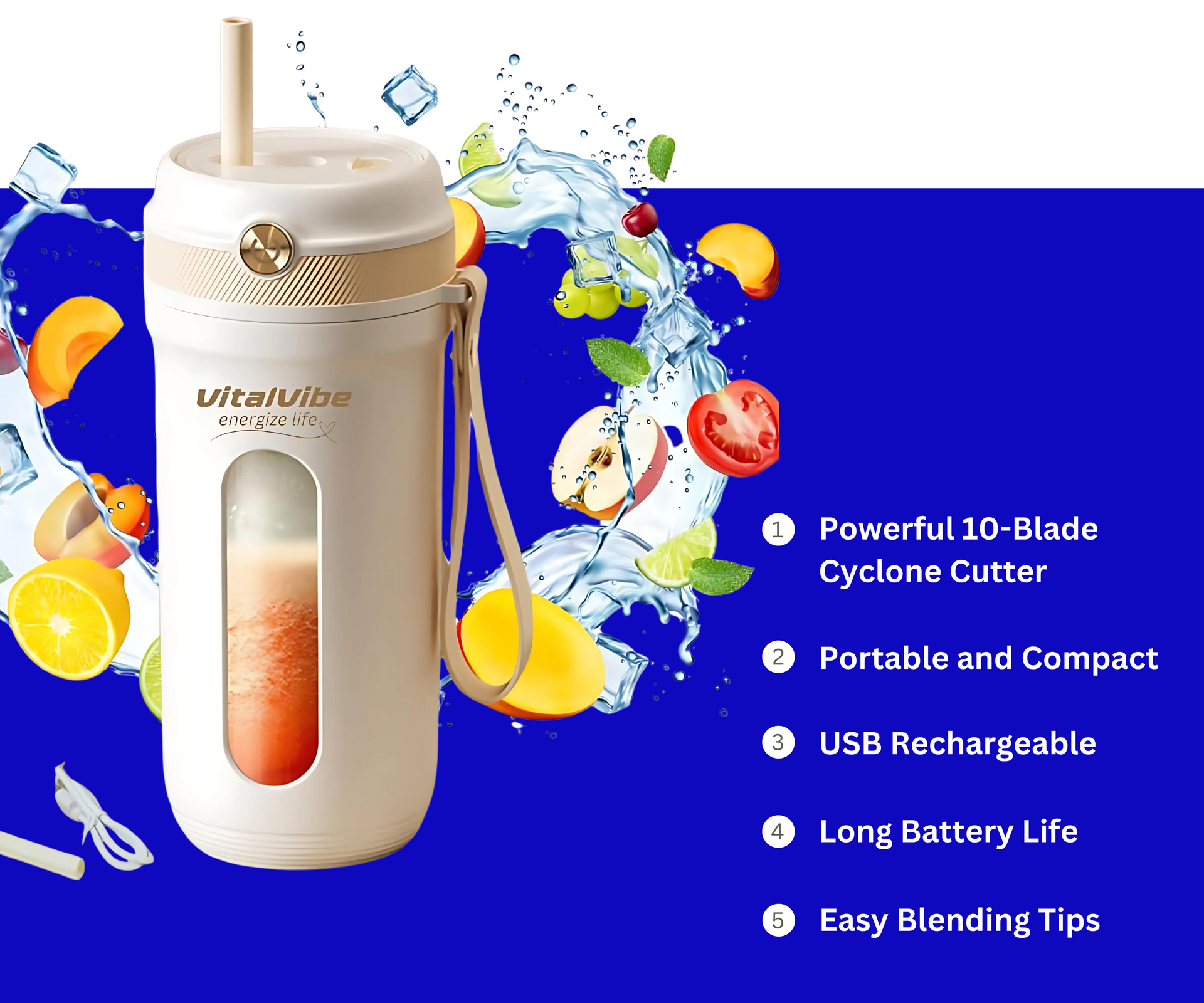 The 10 Blades Electric Portable Blender is a compact, powerful, and portable solution for anyone who loves smoothies, shakes, or freshly blended juices while on the move. Equipped with 10 stainless steel blades and a high-speed motor, this blender ensures you can make fresh and nutritious drinks in just 30 seconds. Its USB rechargeable design means you can take it anywhere, whether you're at home, work, or traveling, and blend effortlessly. The blender is designed to be leak-proof, lightweight, and easy to use, making it perfect for fitness enthusiasts, busy professionals, or anyone looking for a healthy lifestyle.